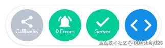 开启debug模式后,Dash应用的右下方出现蓝色logo。展开logo会有三个按钮,第一个按钮展示Dash应用中的回调信息,包括回调关系、回调加载时间等;第二个按钮Errors反映的是程序错误信息,比如回调错误;第三个按钮Server则是显示当前Dash应用的运行状态,绿色表示正常运行,红色表示出错终止。