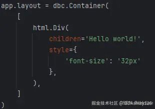 布局规定Dash页面的外观,规定哪一块区域具体放什么内容、怎么排版等。layout 由一棵“组件”树组成,利如 html.Div ,dcc.Graph。