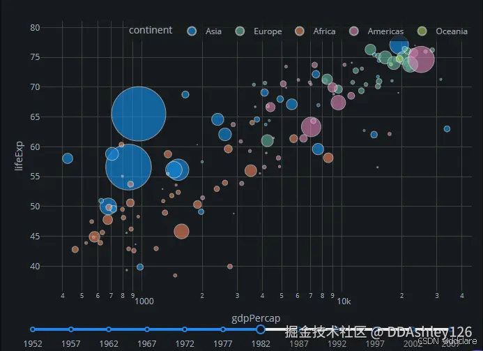 例1 在id为year-slider处接收value,在id为graph-with-slider处返回figure。图片将根据选择的年份进行更新。