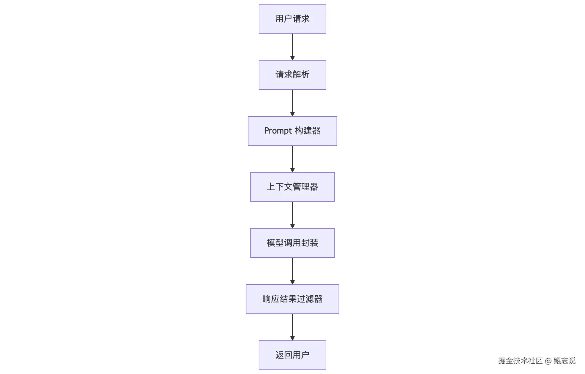 | Prompt 构建器 | 拼接 System Prompt + 上下文 + 当前输入 |