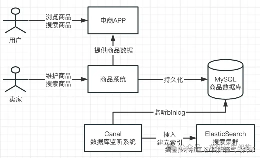 对单库单表的MySQL的数据进行搜索、全文检索、模糊匹配效率和性能都很差,对多库多表的MySQL的数据进行搜索就更麻烦了,所以一般会通过Canal监听MySQL的binlog + 去ElasticSearch建立索引来实现搜索。