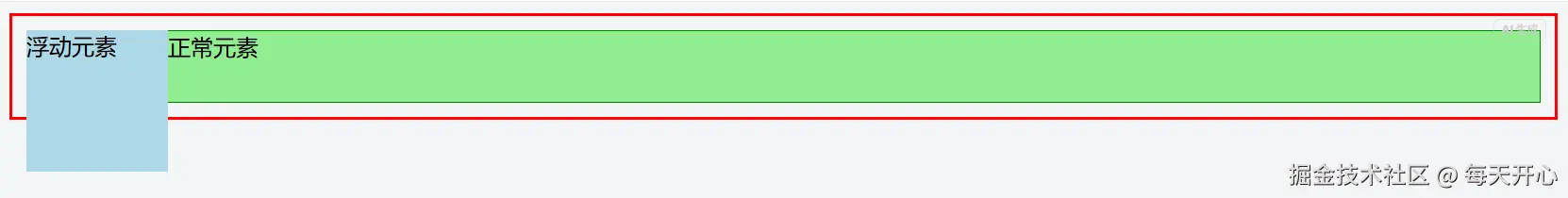 .container没有创建 BFC 时,它无法包含浮动的子元素,导致高度塌陷,边框紧贴顶部。 - 正常元素会向上移动,与浮动元素重叠。