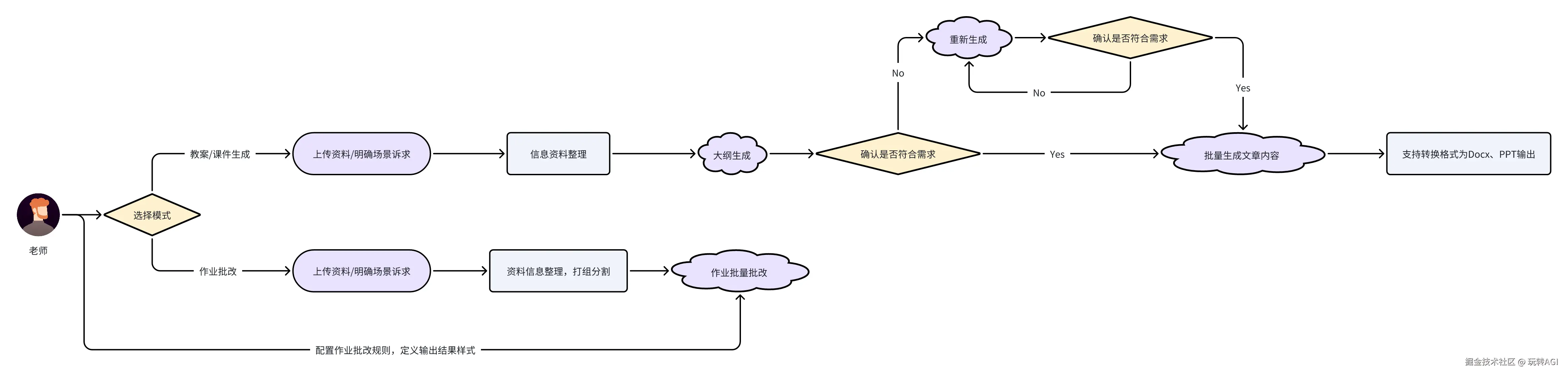 - 对于教师:重复性工作的生成提效,例如教案写作、备课准备、作业批改场景。