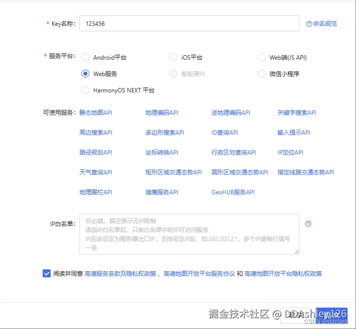 添加key,服务平台选择Web服务,其他的自己随意填写咯