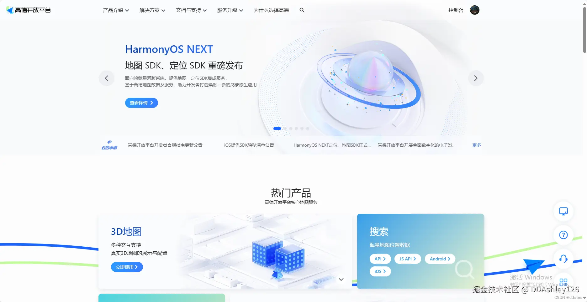 搜索“高德地图开放平台”或者“高德地图api”,进入官网,登录账号。 -
