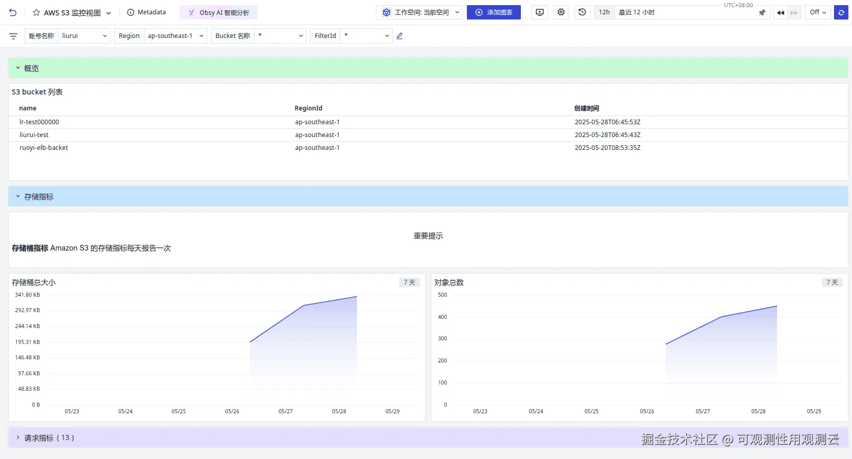 请求指标主要是包含 S3 对象数据被外部访问的请求相关指标