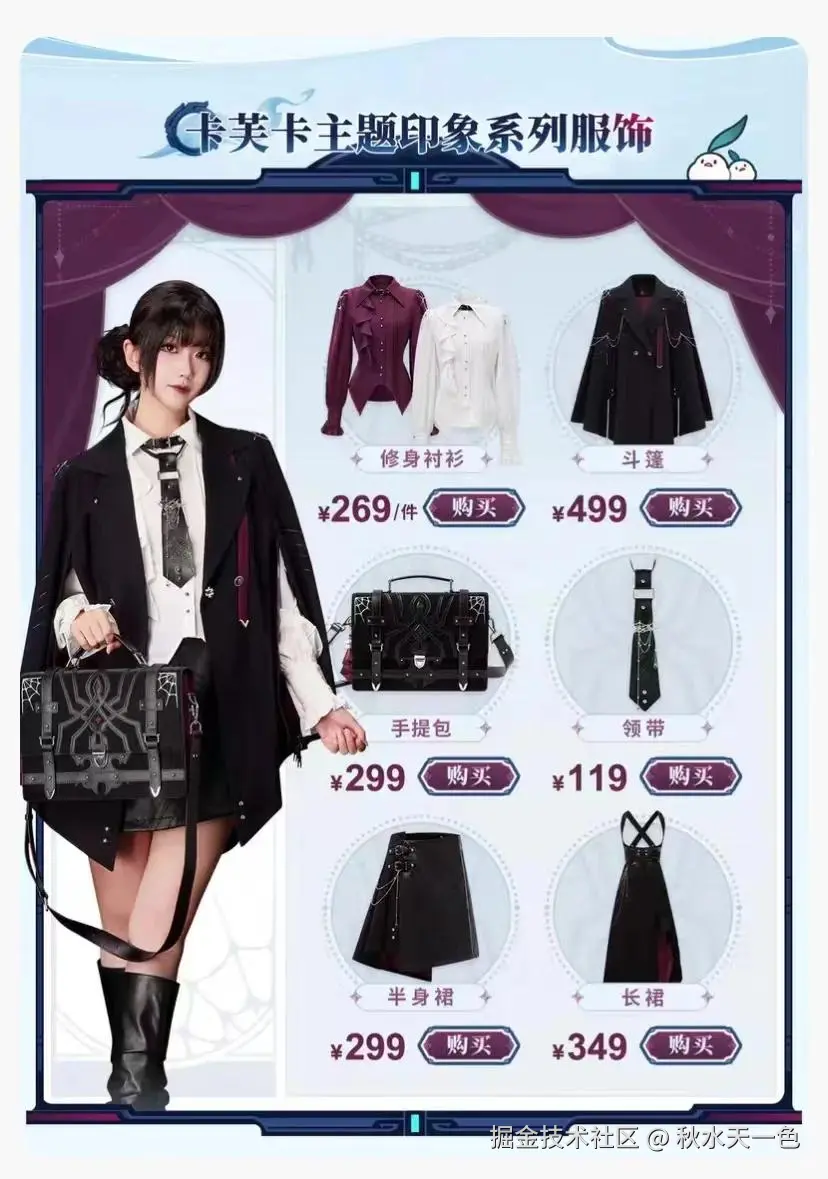 在周边设计上,米哈游的崩铁角色印象服、鹰角的通行证设计更是出圈美物,引领了又一波模仿风潮。