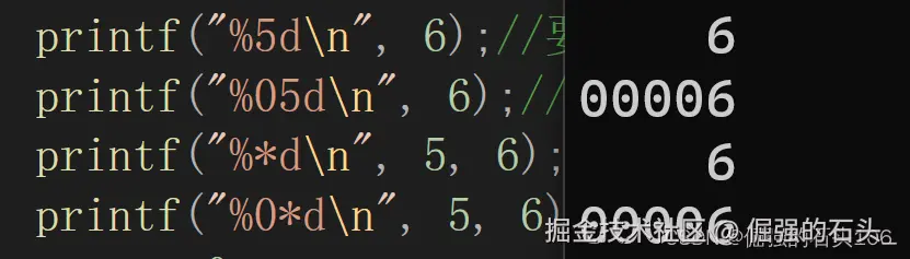 printf("%5d\n", 6);//要求最小输出5位,默认右对齐,用空格填充