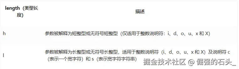 类型长度(length)用于控制待输出整型数据的数据类型长度,取值和含义如下: