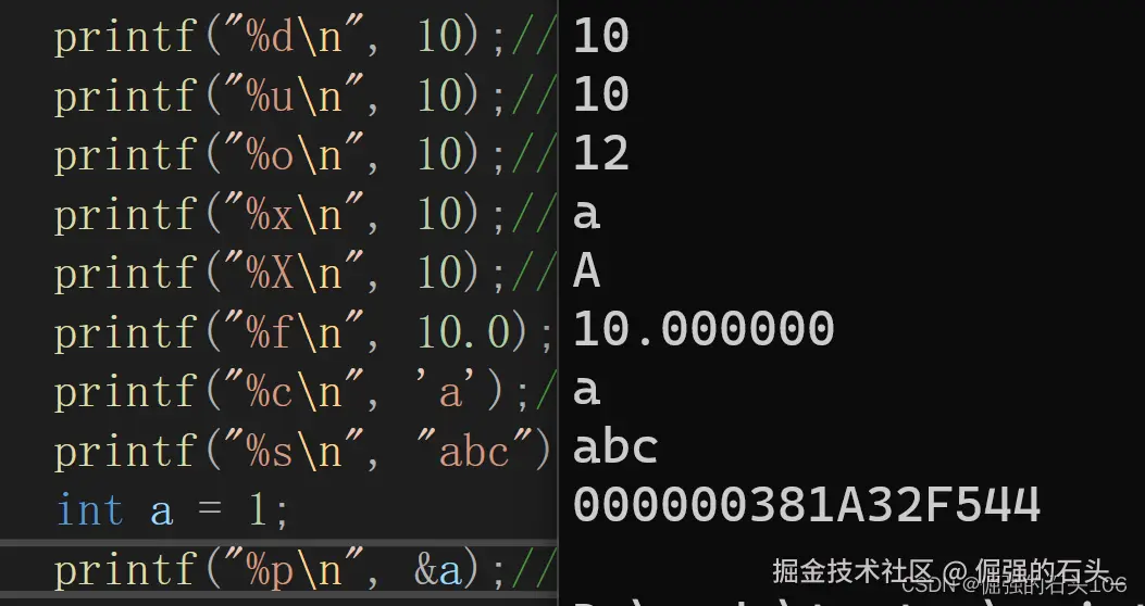printf("%x\n", 10);//无符号整型十六进制小写