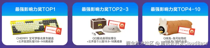 4. 参与最强影响力奖评选的作者,须提交文章&视频的参赛作品问卷:doc.weixin.qq.com/forms/AJEAI…;视频须确保画面和音质清晰,时长1分钟以上,包含腾讯云开发「CloudBase AI ToolKit」的实际编程片段或截图,发布平台限定为B站、微信视频号、小红书及腾讯云开发者社区。
