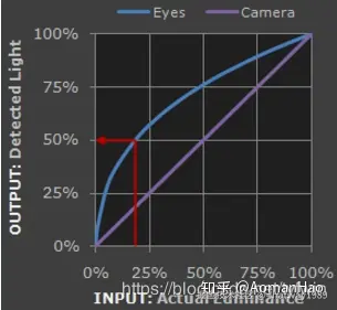 人眼对外界光源的感光值与输入光强不是呈线性关系的, 而是呈指数型关系的。 在低照度下,人眼更容易分辨出亮度的变化, 随着照度的增加,人眼不易分辨出亮度的变化。而摄像机感光与输入光强呈线性关系, 为方便人眼辨识图像, 需要将摄像机采集的图像进行gamma 矫正。