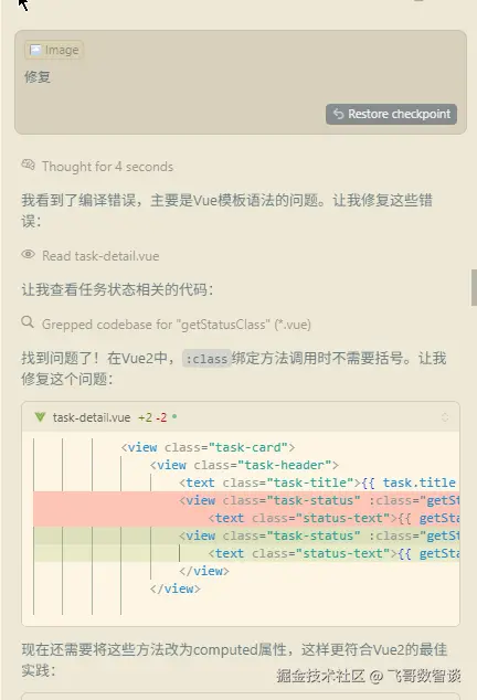 这类比较明确的语法错误,截图交给 Cursor 就行,一般一次就能修复。