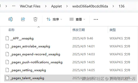 4、回到刚才的微信文件目录下 WeChat Files/Applet下,可以看到新增了一个wx开通有的文件夹,就是我们刚才运行的微信小程序的缓存文件了