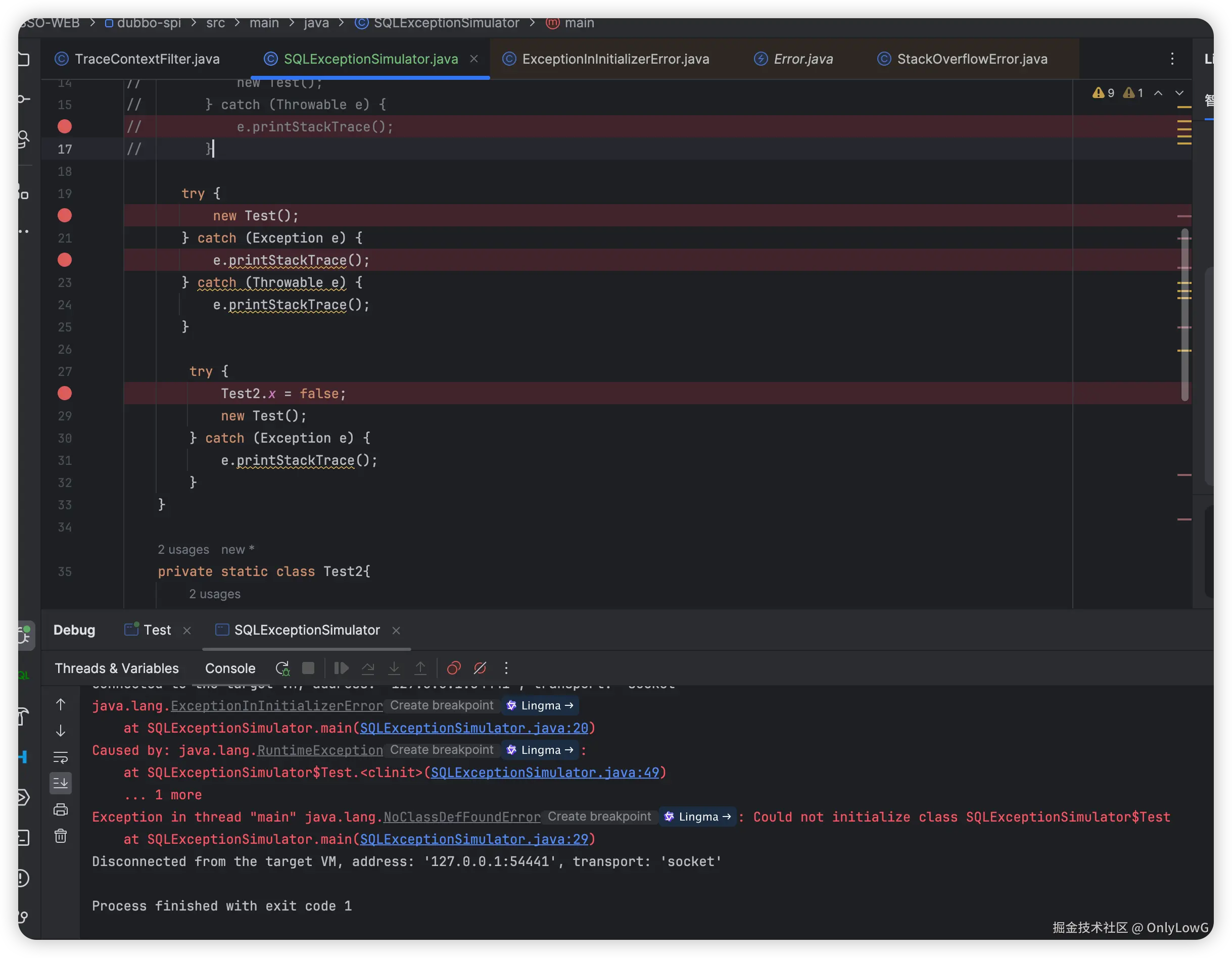 | catch (SQLException e) | ❌ 报错:NoClassDefFoundError |