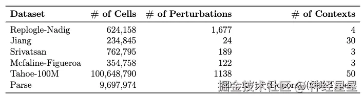 ST 模型训练所用的单细胞干预数据集详情如下图所示,所有数据集均经过筛选,仅保留了对 19,790 个人类蛋白编码 Ensembl 基因的测量值,并统一标准化为总 UMI 深度为 10,000 。