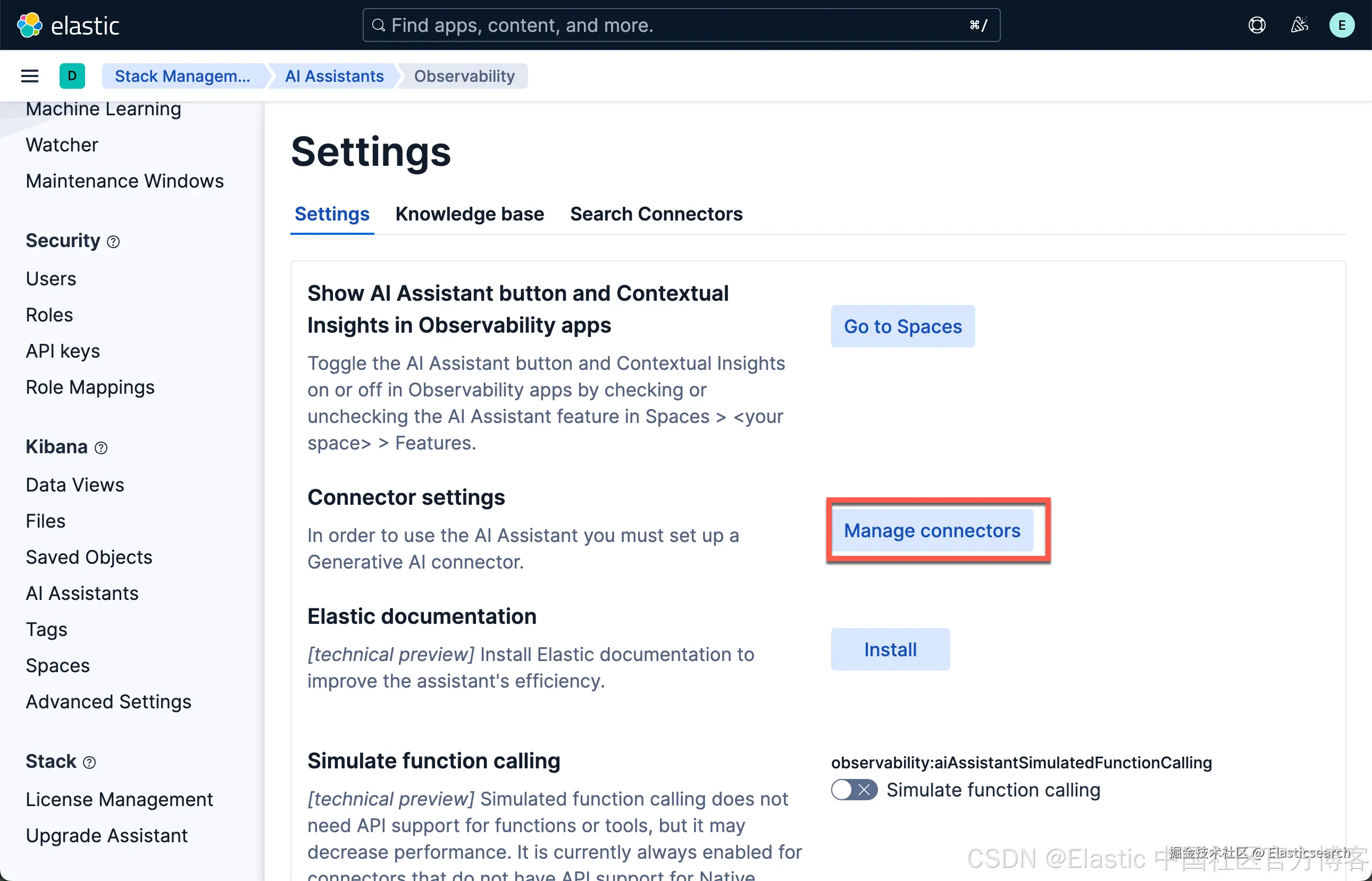 注意:在 9.0.01 版本中,Elastic AI Assistant 的使用和之前的版本有所不同。我们需要做一些特殊的配置才可以,尽管非常麻烦。我也是花了很长时间找人帮忙才搞明白。我也反映了这个问题。以后的设计可能会发生改变。