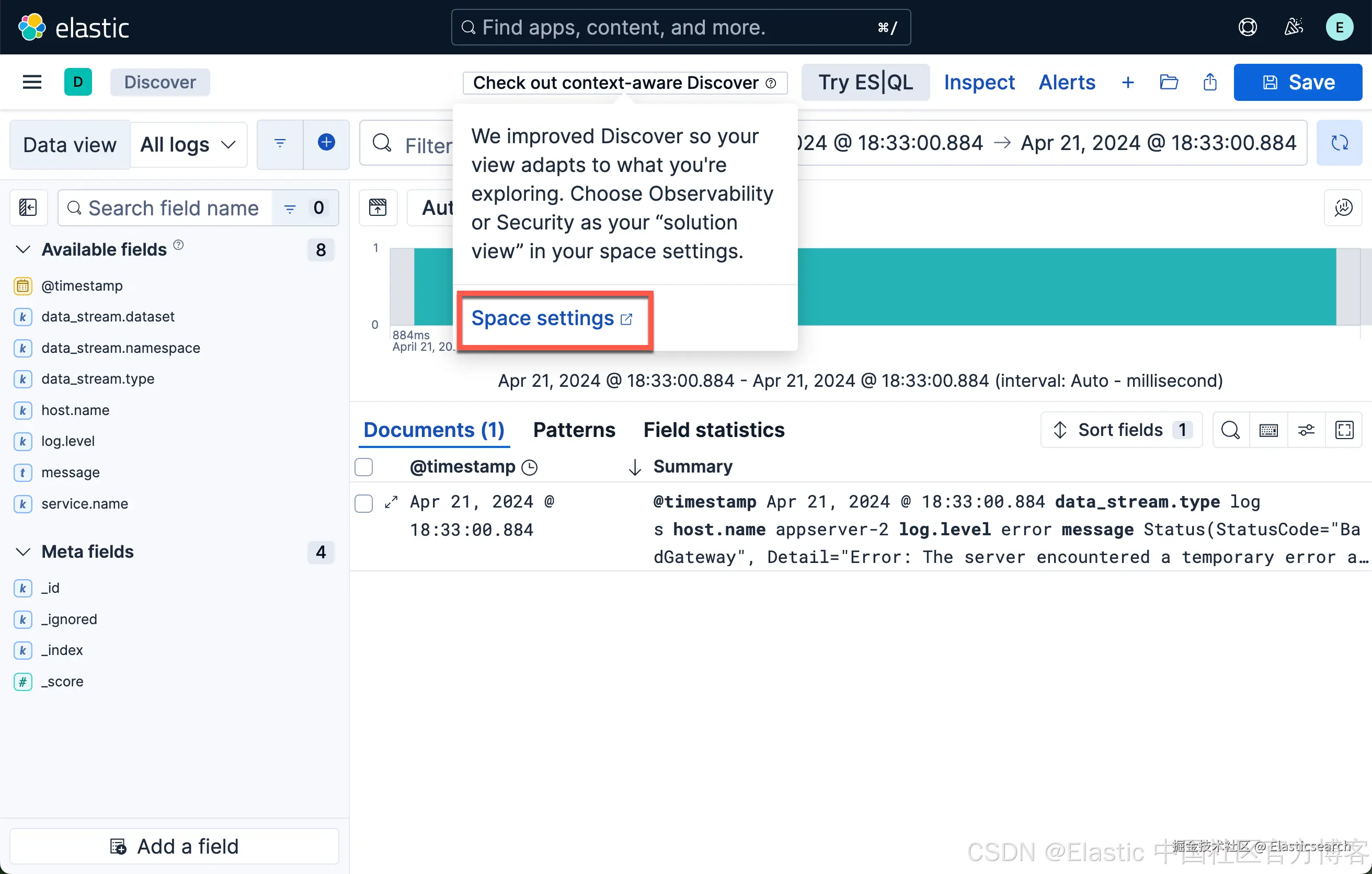 保存上面的设置。我们再次点击 Discover: