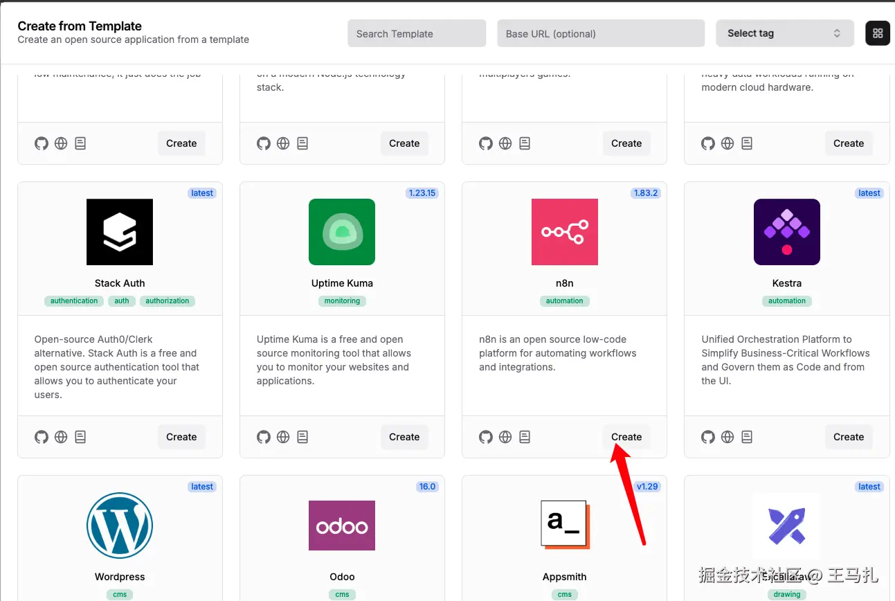 2、找到n8n,点击create