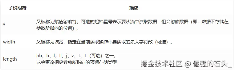 长度修饰符length的作用是为了改变说明符的预期存储类型,受于篇幅所限,这里不再展开介绍