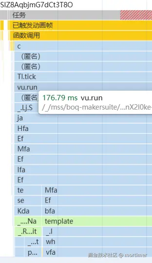 c,c调用了(匿名),然后调用了Tl.tick,再调用了vu.run... 这一长串的堆叠,就是函数调用的路径。 -
