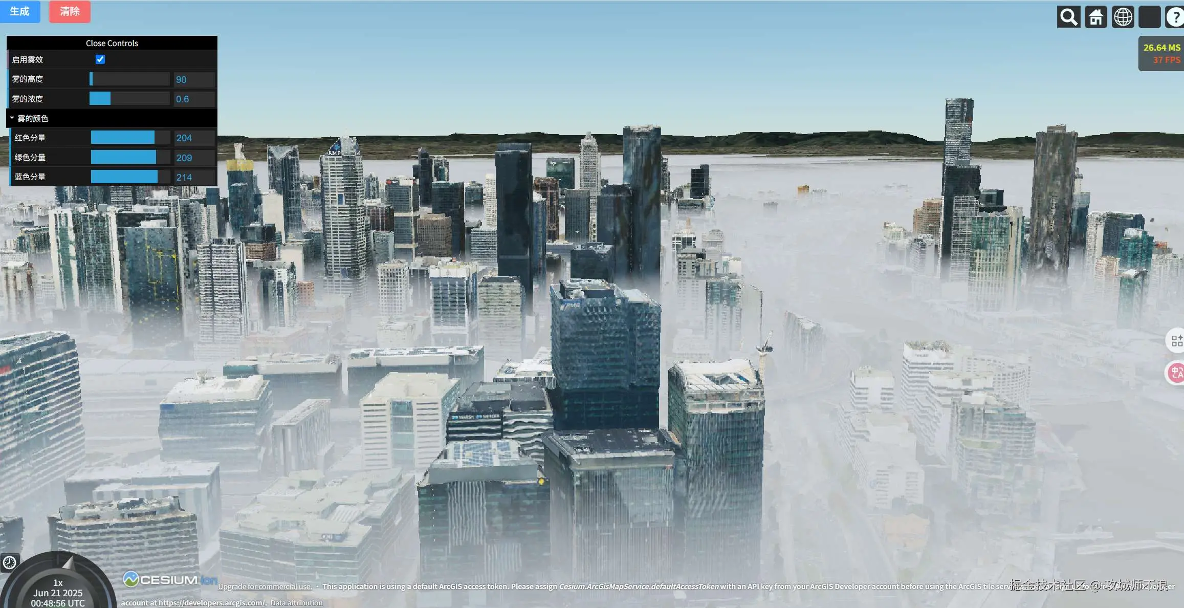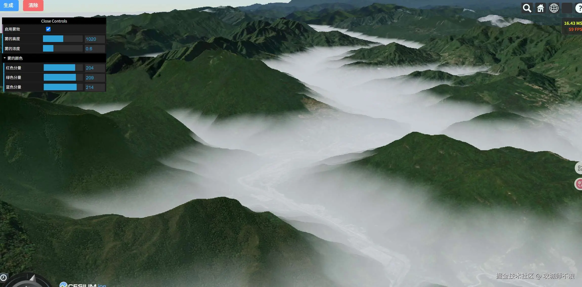 那么,今天,我们一起来探索一下在Cesium中实现一个非常逼真的效果——高度雾(Height Fog),让它为我们的效果提升一定的逼格!
