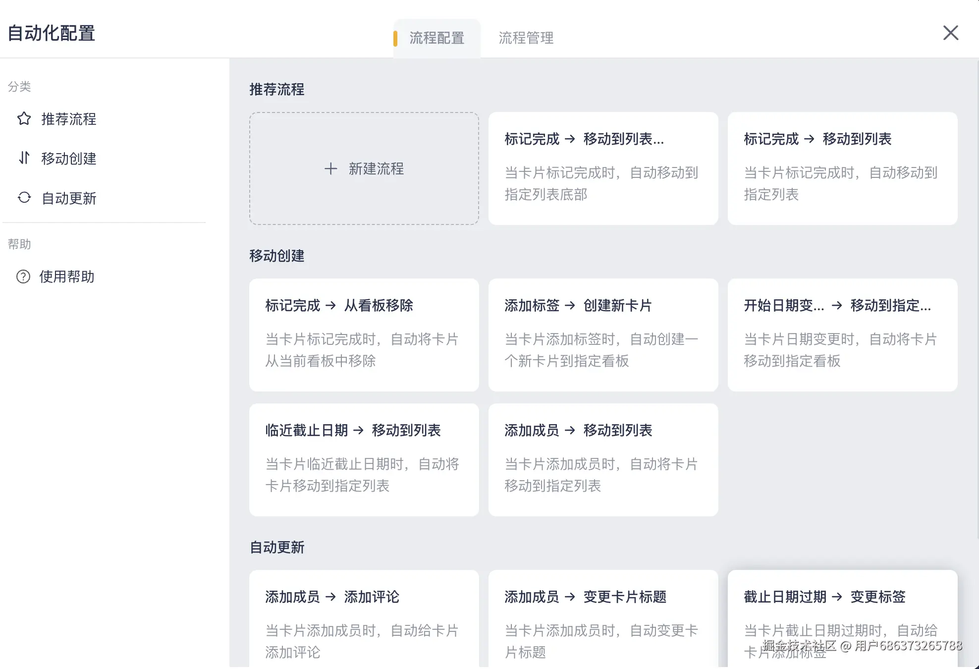 - 状态变更联动:任务在看板泳道间拖拽时,自动触发后续任务创建,形成流程闭环