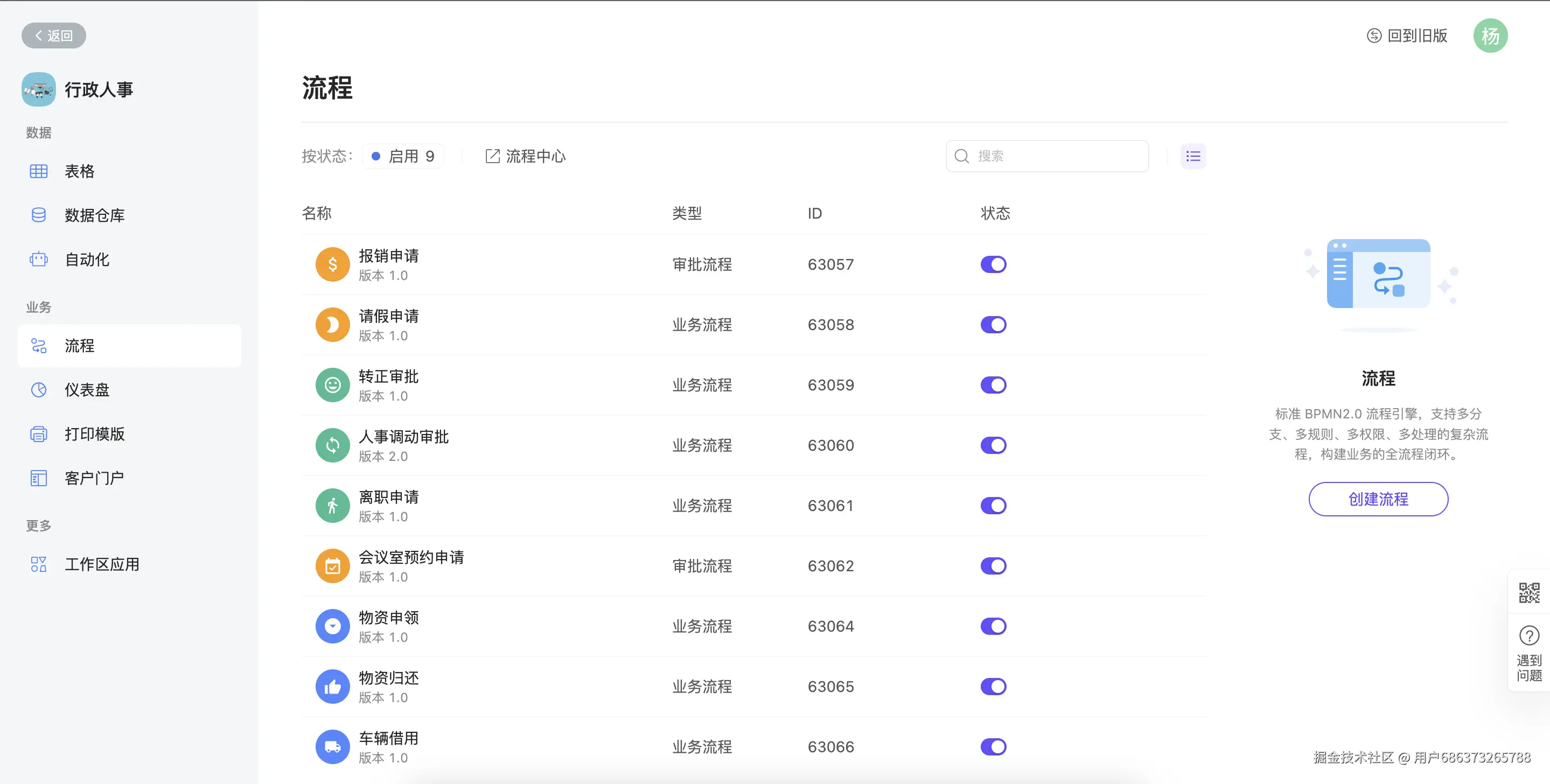- 流程审批自动化:报销、用印等行政任务提交后,系统根据预设规则自动流转至直属领导→财务→行政,支持多级条件审批