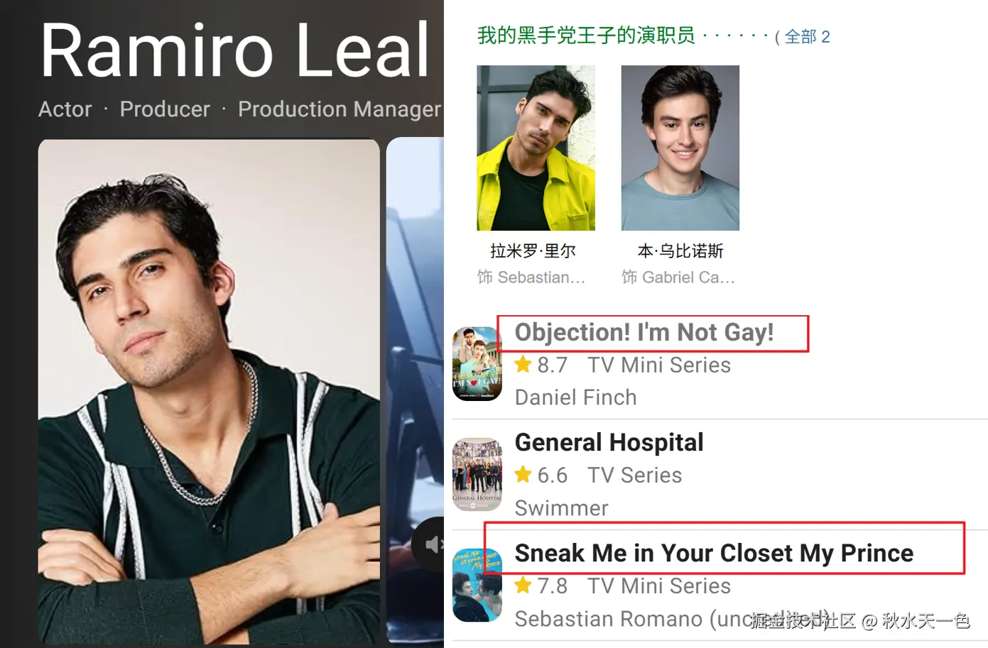 眼尖的小伙伴肯定发现这两部双男主短剧共用了同一个男主Ramiro Leal,这出场率感觉直逼双男主短剧娇夫No.1 安德烈·普鲁尼拉(《我的秘密特工丈夫男主之一》)。