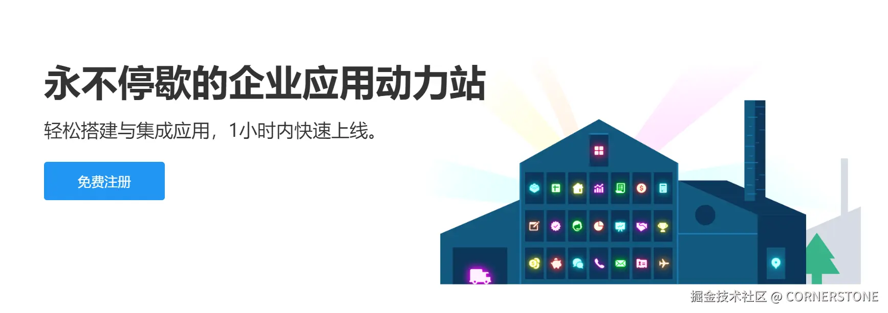 钉钉宜搭是阿里巴巴旗下的一款低代码搭建平台,与钉钉的数据互通,如果你们公司深度使用钉钉,那么选择宜搭来串联公司内部数据是非常不错的选择。宜搭虽然号称是低代码开发平台,但它主要以表格为载体创建工作流,聚焦在工作流的功能开发上,仿佛非开发人员也可以参与开发,降低了开发难度,但对于专业开发者来说,这种边框式的开发逻辑,束手束脚,开发者只能在宜搭现有逻辑上进行开发,稍个性化的企业内部工作流,宜搭就无法满足了。这也是为什么钉钉作为企业通讯工具占有率极高,但宜搭却没有如此战绩的原因。
