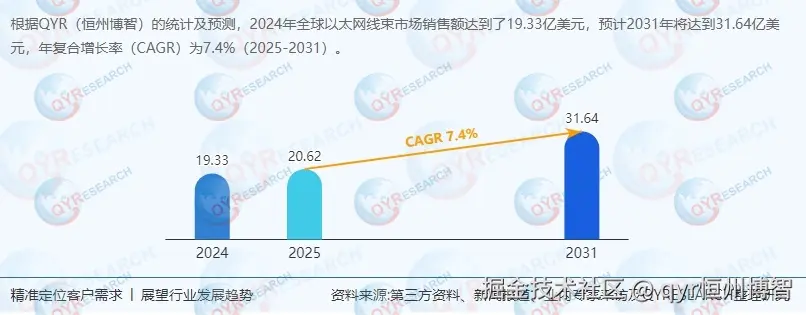 根据QYResearch最新调研报告显示,2024年全球以太网线束市场规模达19.33亿美元,预计2031年将增至31.64亿美元,2025-2031年CAGR为7.4%。