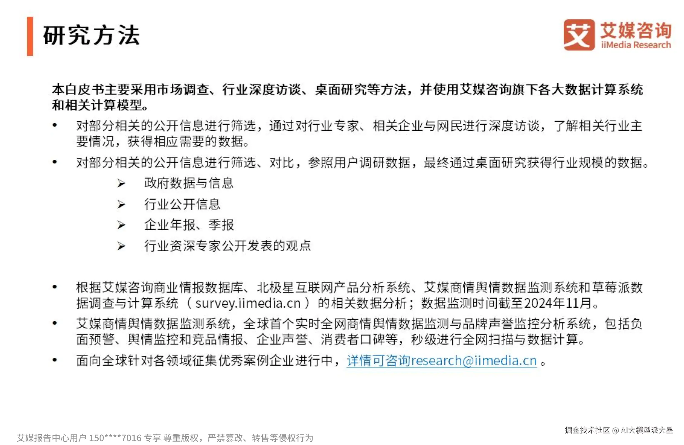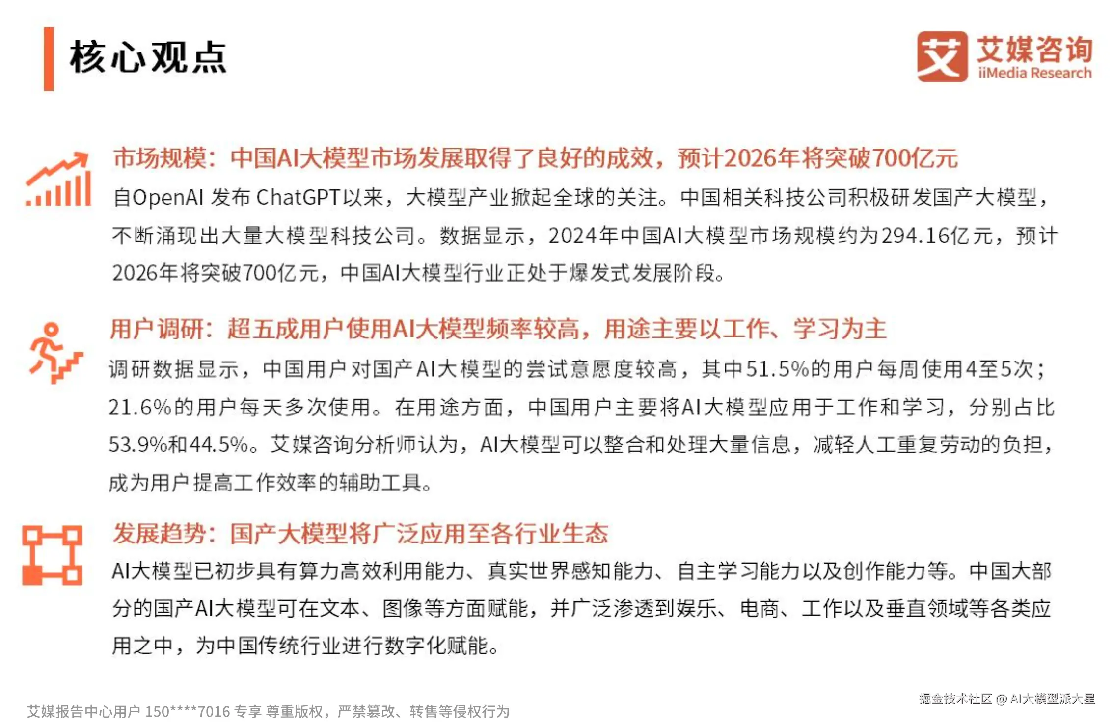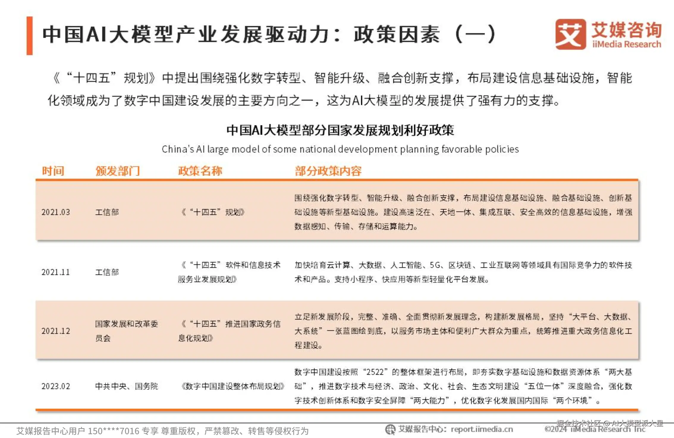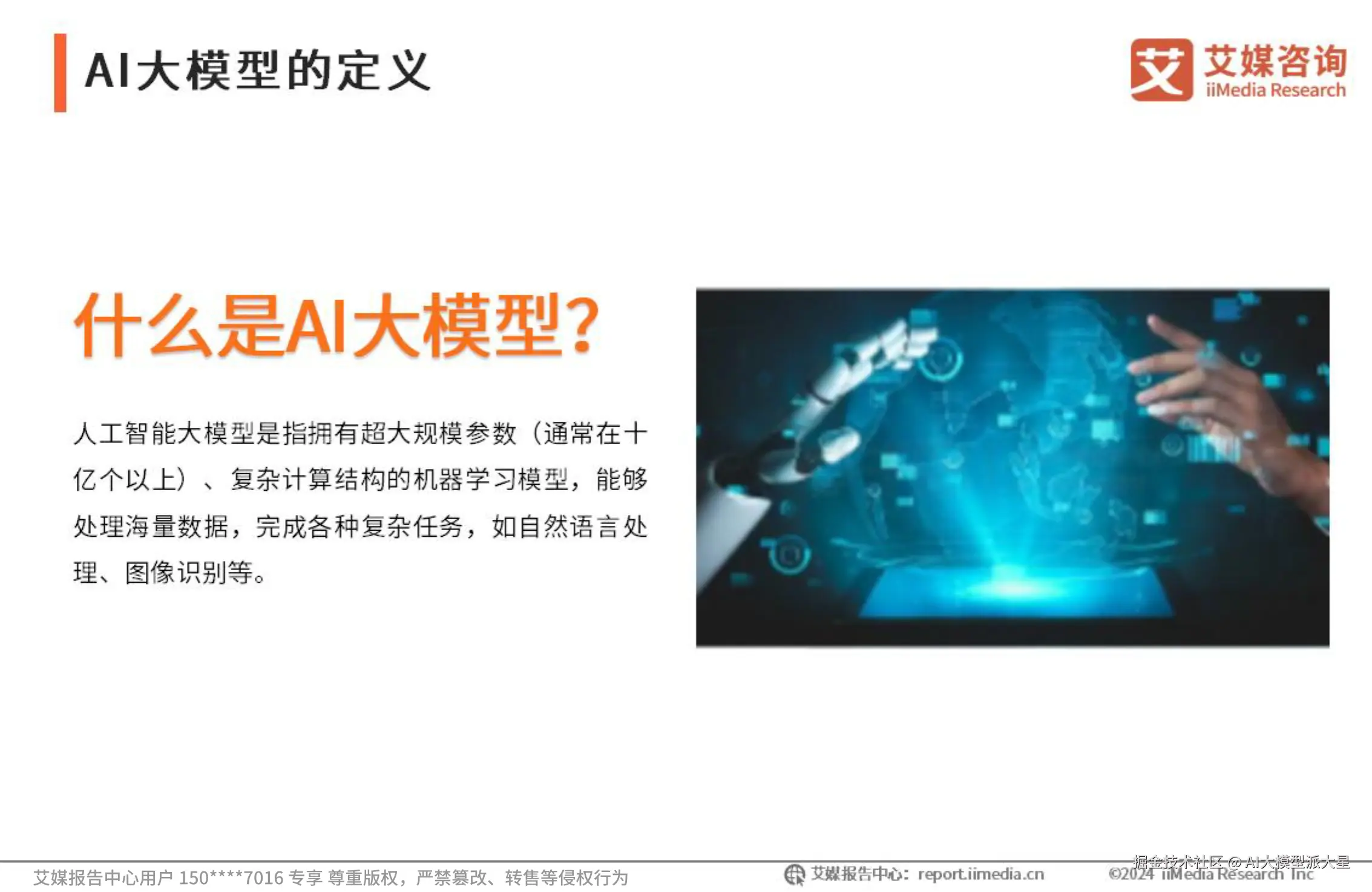 自OpenAI发布ChatGPT以来,大模型产业掀起全球的关注,AI大模型已经成为科技创新的新高地。AI大模型因其强大的数据处理能力和卓越的性能表现,被视为推动产业升级和经济转型的重要引擎。近年来,中国积极布局、大力支持AI大模型发展,相关科技公司积极研发国产大模型,同时不断涌现出大量大模型科技公司。随着技术的不断成熟和应用场景的不断拓展,AI大模型正逐渐渗透到各行各业,成为推动社会进步和经济发展的新动力。全球新经济产业第三方数据挖掘和分析机构iiMedia Research(艾媒咨询)最新发布的《2024-2025年中国AI大模型市场现状及发展趋势研究报告》数据显示,2024年中国AI大模型市场规模约为294.16亿元,预计2026年将突破700亿元,中国AI大模型行业正处于爆发式发展阶段。