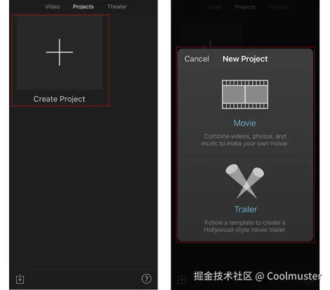 在主屏幕上,点击“项目”,然后单击“创建项目”以开始一个新项目。