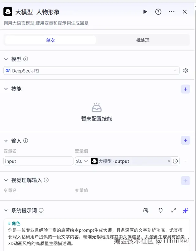 4. 大模型节点:生成图片提示词