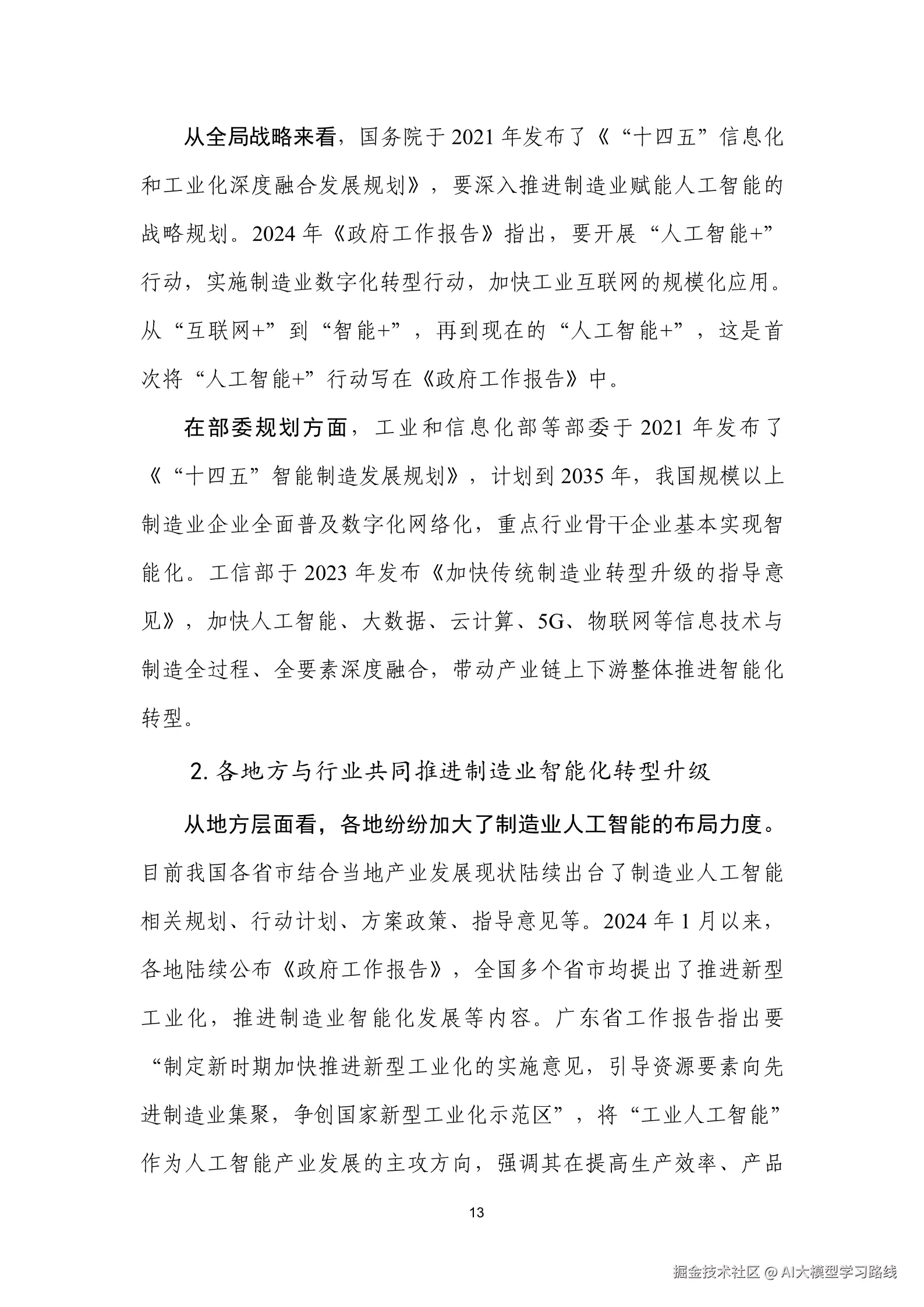 本报告深入剖析当前技术应用的现状,关键技术创新方向,以及行业应用的具体情况,通过制造业具体场景的典型案例揭示人工智能如何助力制造业研发设计、生产制造、运营管理和产品服务的全流程智能化升级。在此基础上对制造业人工智能的未来发展趋势进行展望,以期为相关政策制定者以及行业从业者提供决策支持,共同助力我国制造业在人工智能时代的转型升级和可持续发展。