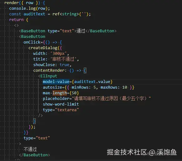 写业务的时候发现,因为想偷懒嘛,直接就在想在外部去定义一个变量,然后写个弹窗里(tsx)的el-input,而不是又去写个vue页面,但发现就输入不了了,而且跟着文档写textarea没有字数统计。就两个问题嘛