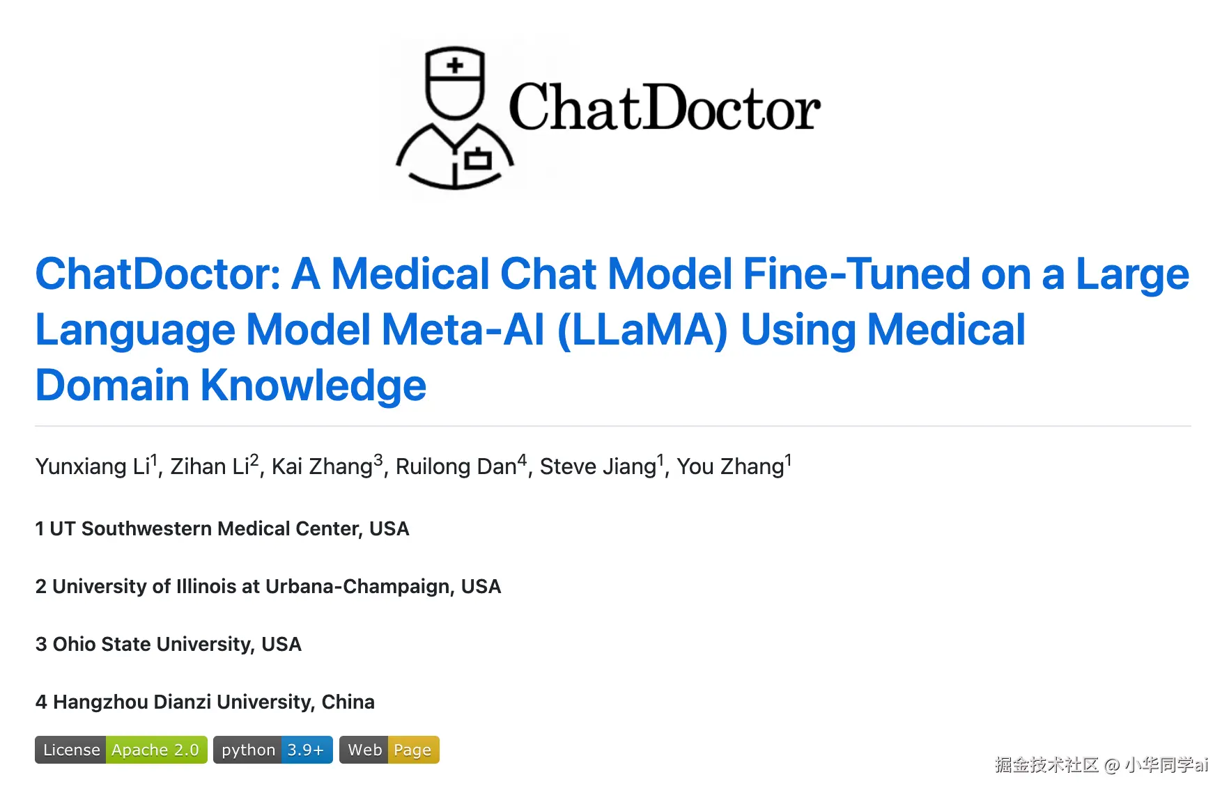 代医疗资源分布不均、诊间时间短、AI 医疗产品不断兴起,医疗问答助手的需求痛点凸显。ChatDoctor 正是诞生于医生问诊效率瓶颈下,通过 LLaMA 在医学领域语料和问答对话的深度微调,实现面向医疗领域的自然语言问答助手。