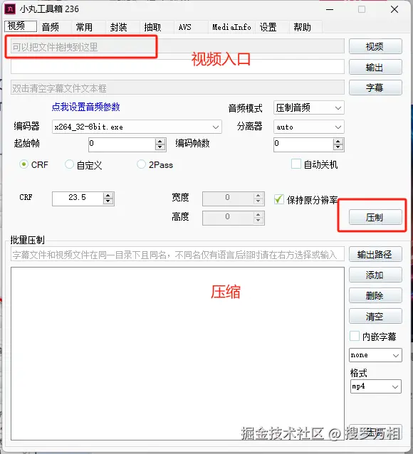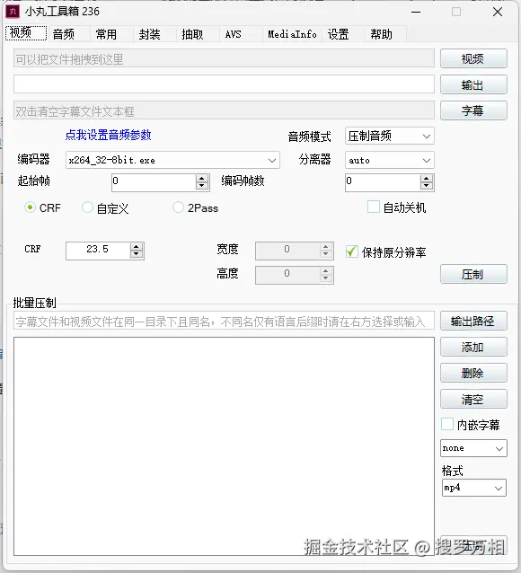 小丸工具箱一款可以压制H264+AAC视频的图形界面工具,内核是x264、neroaac、mp4box等软件。预制了@zj262144 研究出来的高清高压参数。