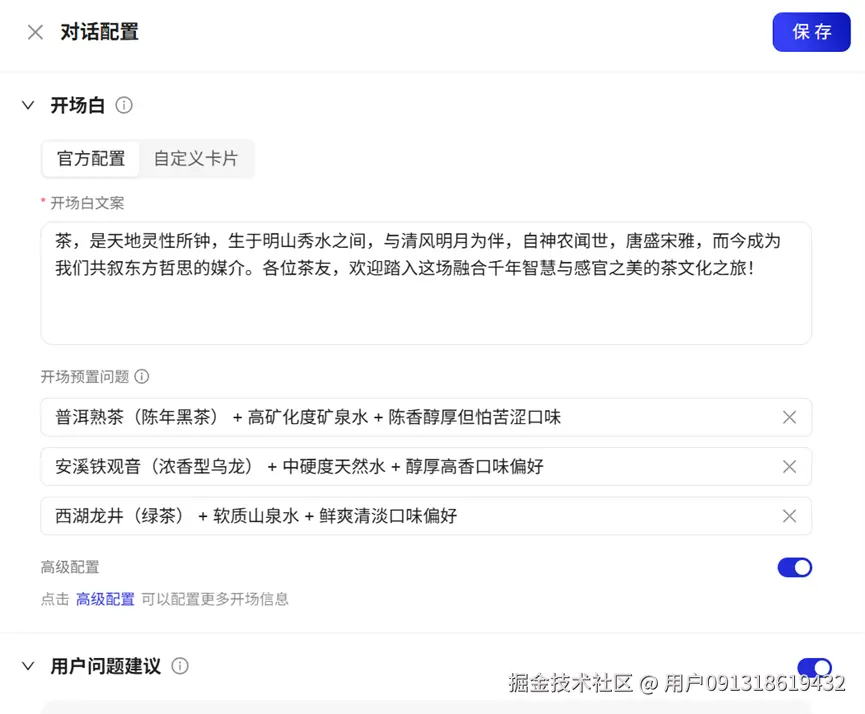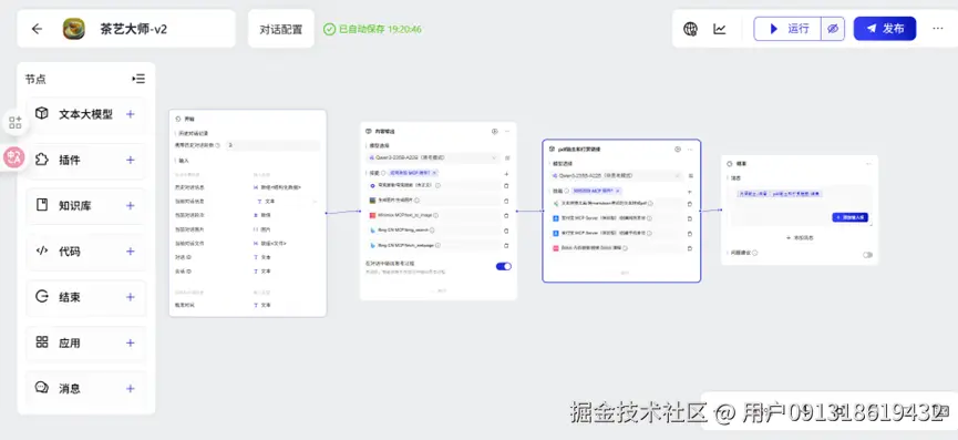 在人工智能重塑传统行业的浪潮中,蚂蚁百宝箱平台,链接如下: 百宝箱百宝箱平台是一款可以提供一站式 AI 原生应用的开发平台,您无需具有任何代码基础,只需通过自然语言即可三步完成应用的创建与发布。百宝箱平台不仅可以帮助您轻松创建各类智能体,一键发布到支付宝小程序,释放无限可能,快来登录百宝箱平台开启您的 AI 应用创作之旅吧!https://tbox.alipay.com/community?operationSource=1006 为开发者提供了低门槛的智能体创作工具。本文将基于百宝箱MCP能力,详细解析生活服务方向智能体「茶艺大师-V2」的开发全流程,实现非遗茶道技艺的数字化传承与创新服务。