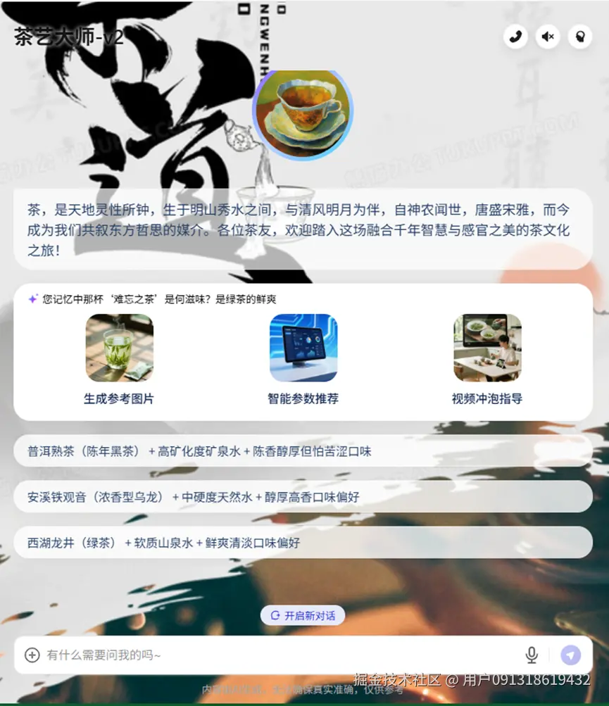 - 视觉化引导:自动生成茶汤色泽参考图(Minimax驱动)