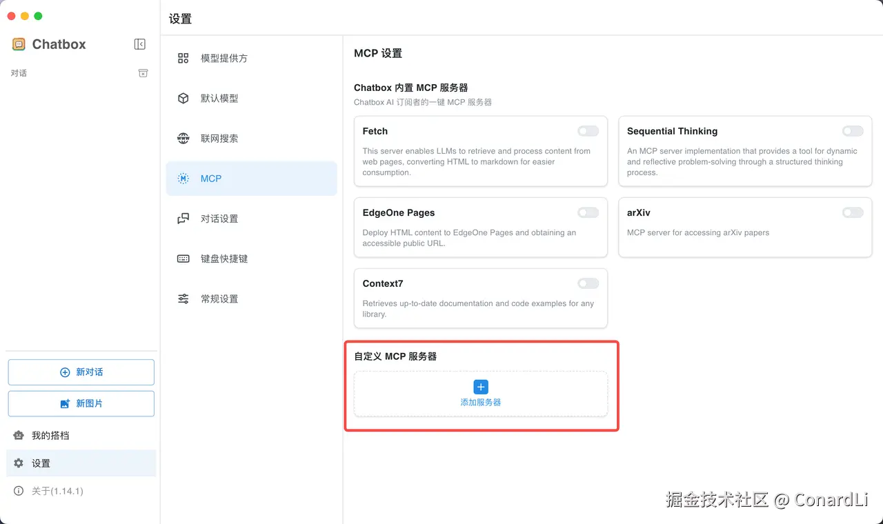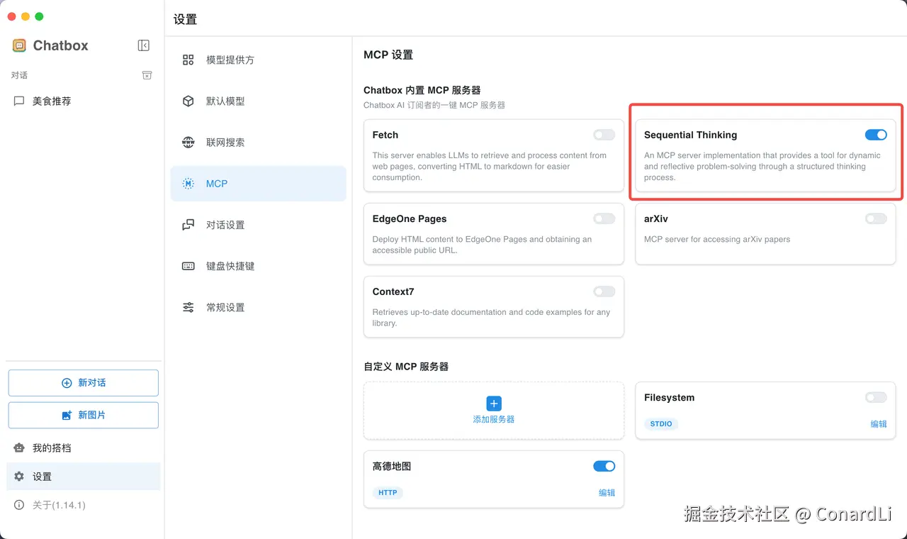 另外一个需要用到的 MCP 是 Sequential Thinking,Chatbox 默认就内置了这个 MCP: