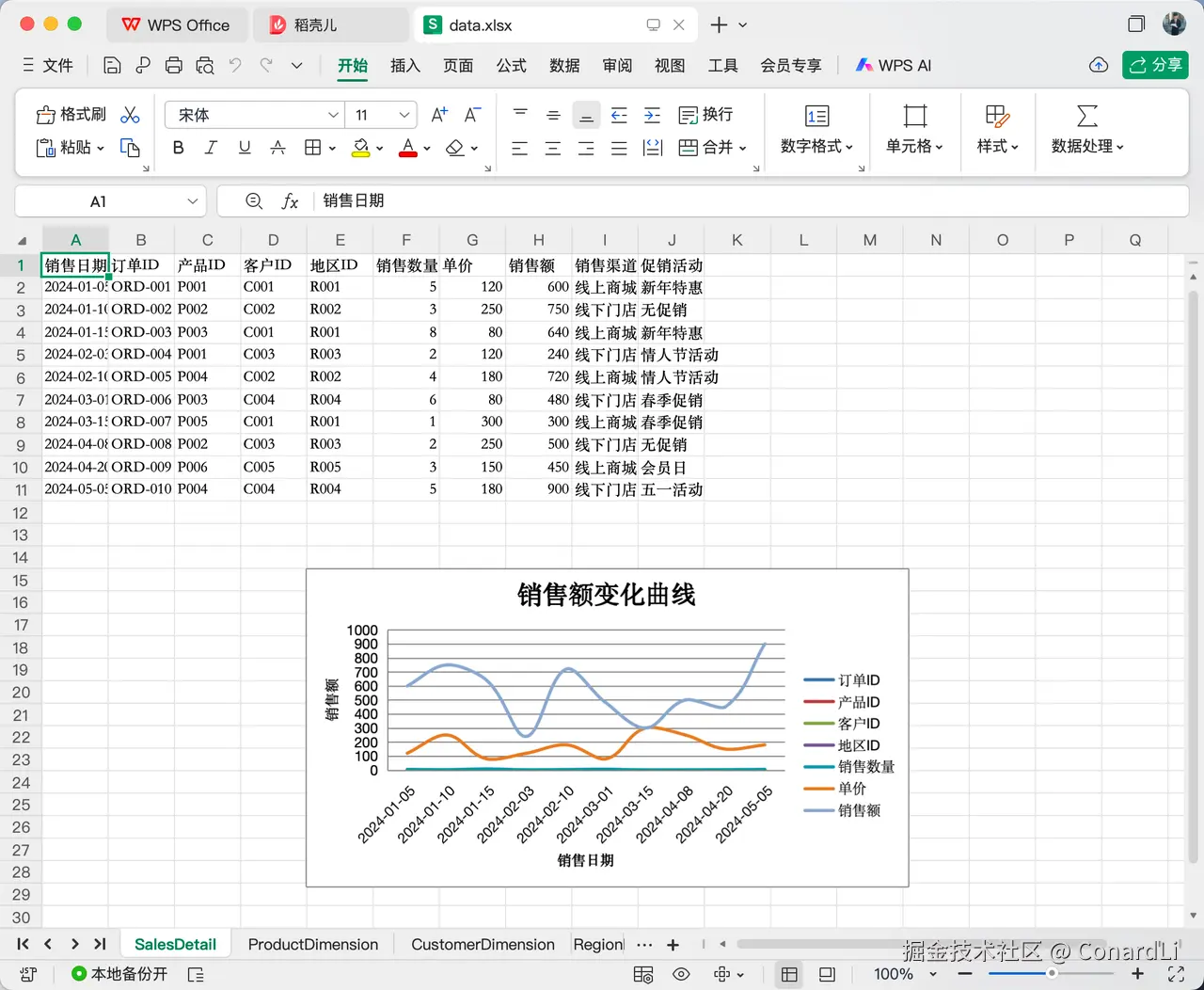 提示词:帮我分析表格中的数据,然后帮我生成销售额的变化曲线