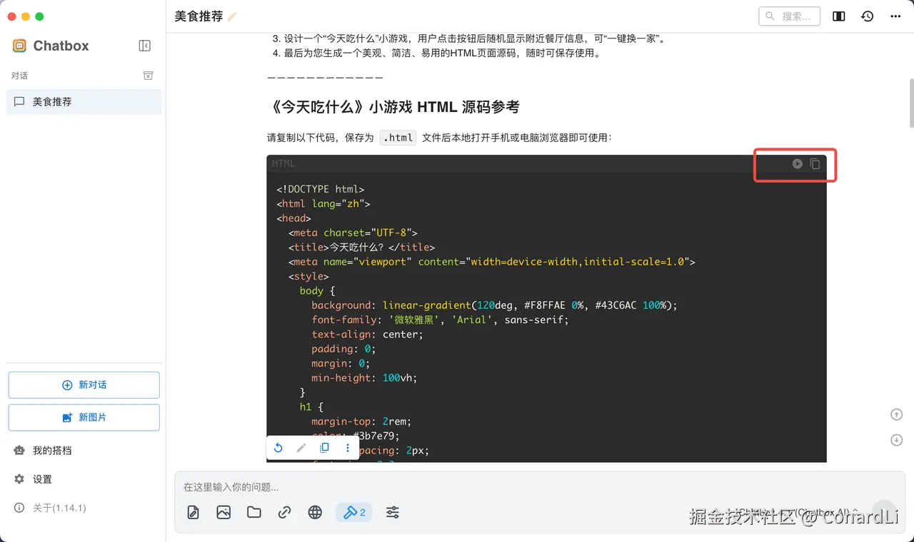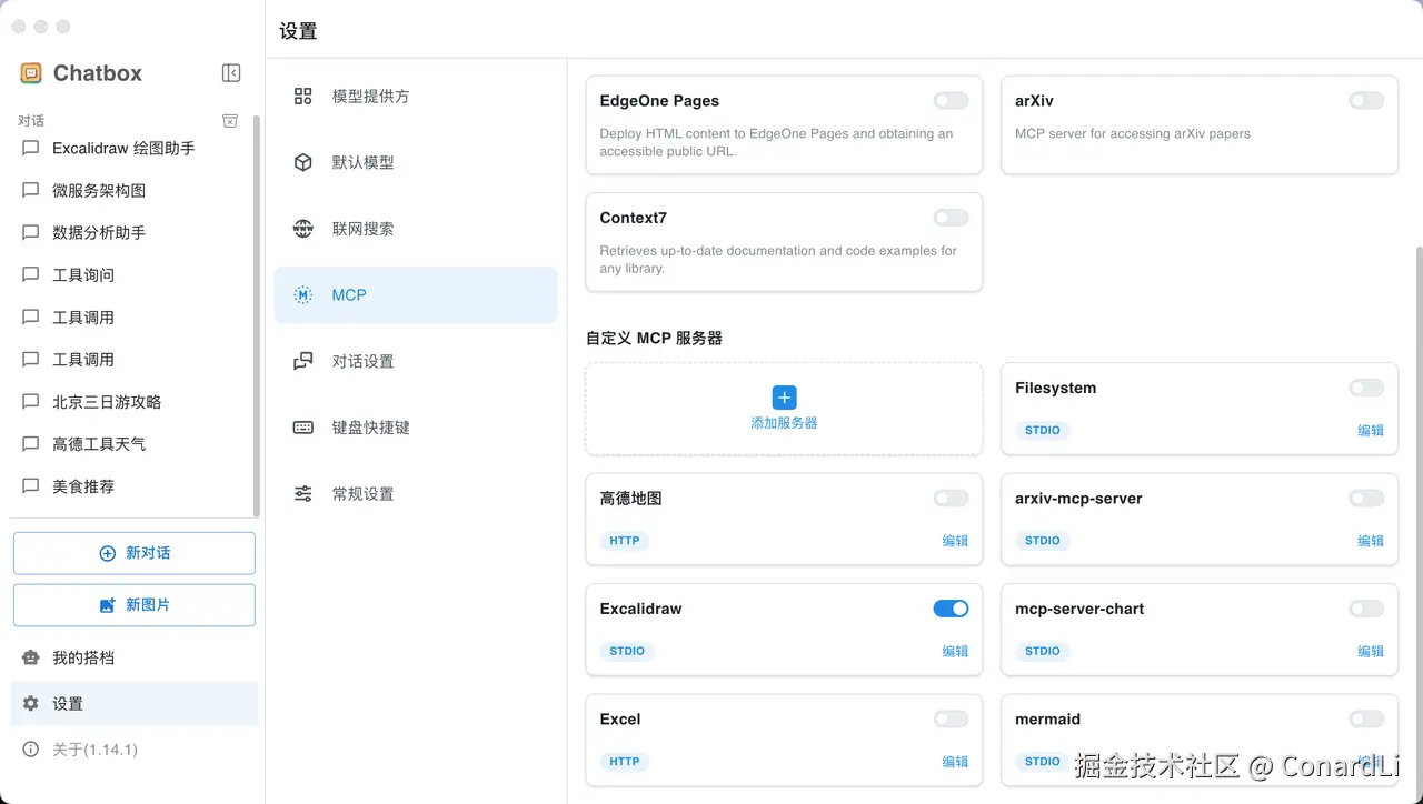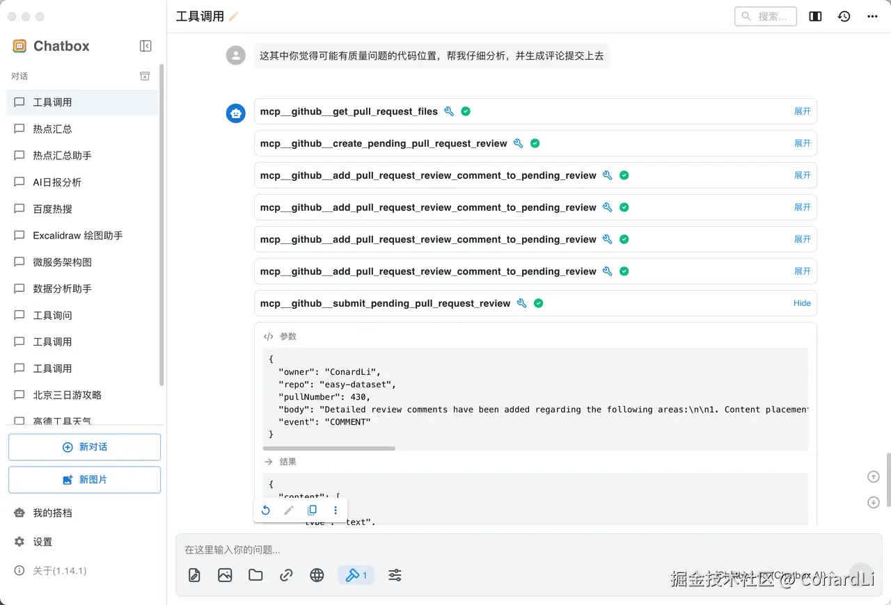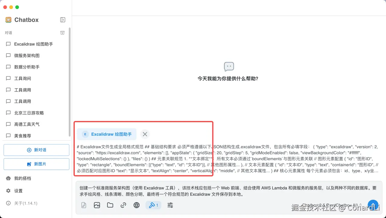 这次我们使用到的 MCP Host 是 Chatbox ,Chatbox 是我一直在本地使用的一款本地 AI 聊天软件,但是之前一直不支持 MCP,前几天发现在最新的 1.14 版本中终于支持上了 MCP ,于是立马来体验了一下,效果非常不错: