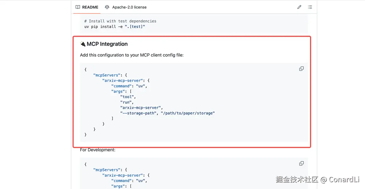 来到 arxiv-mcp-server 的 Github github.com/blazickjp/a… ,可以看到具体的配置文档: