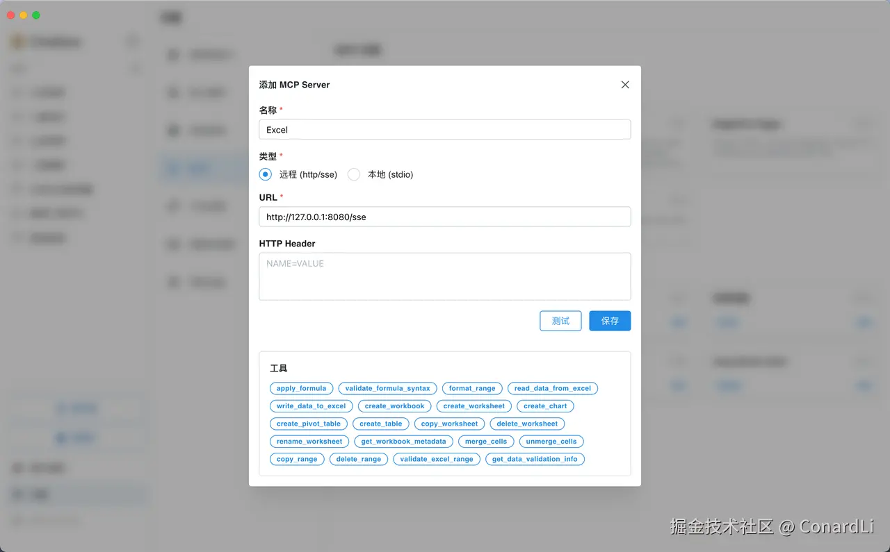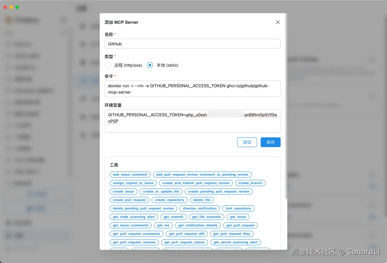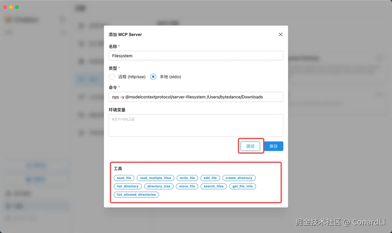 点击测试,如果能成功拉到工具列表,说明配置成功: