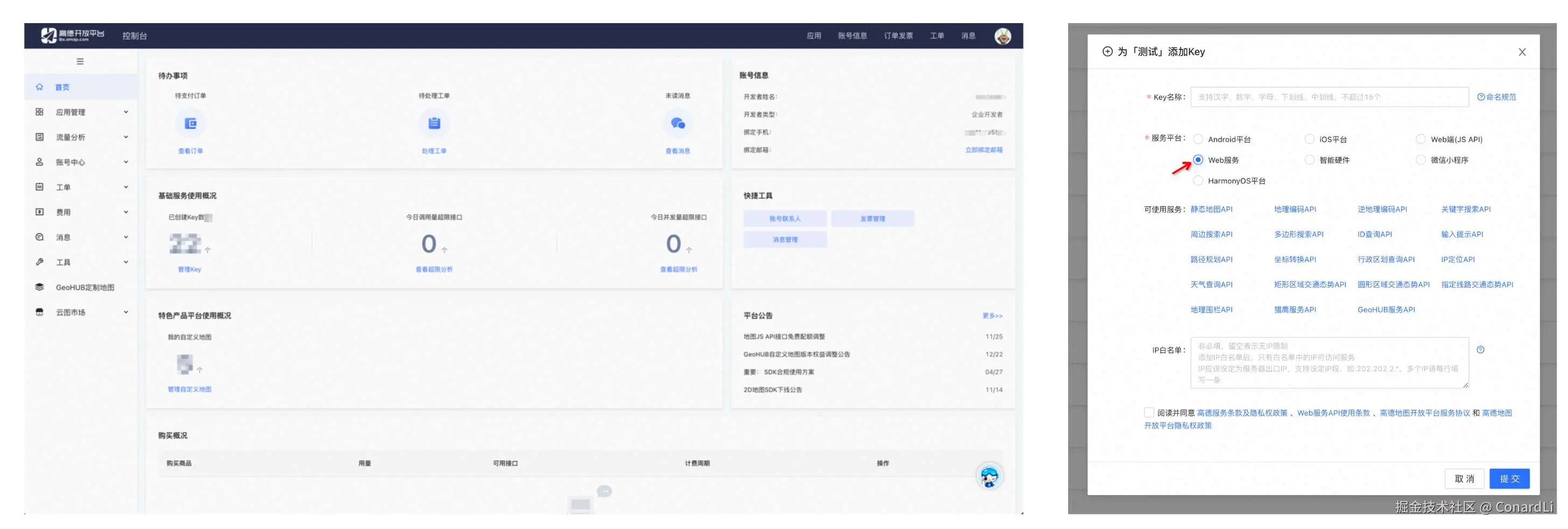 这里我们需要一个高德地图的 API Key,可以参考高德地图的官方文档(lbs.amap.com/api/mcp-ser… Key(Web 服务):