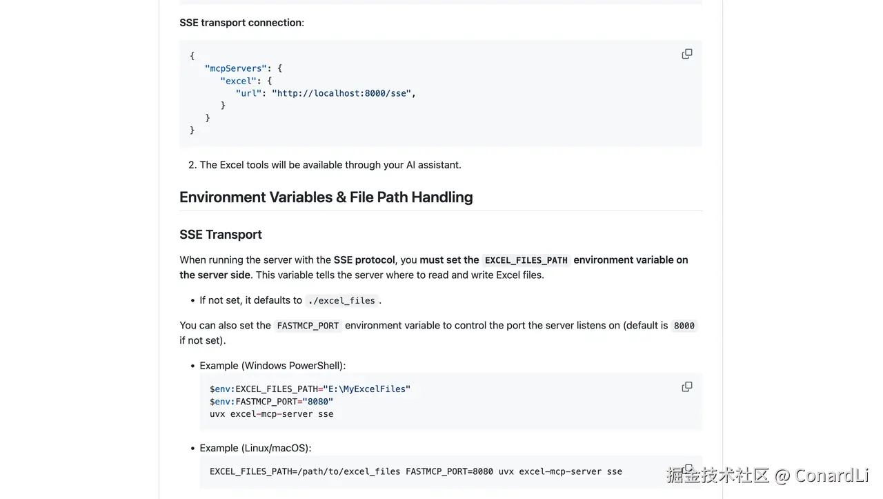 这里我们通过 SSE 的方式进行连接,复制以下命令到终端执行(注意把 EXCEL_FILES_PATH 替换为你本机路径):