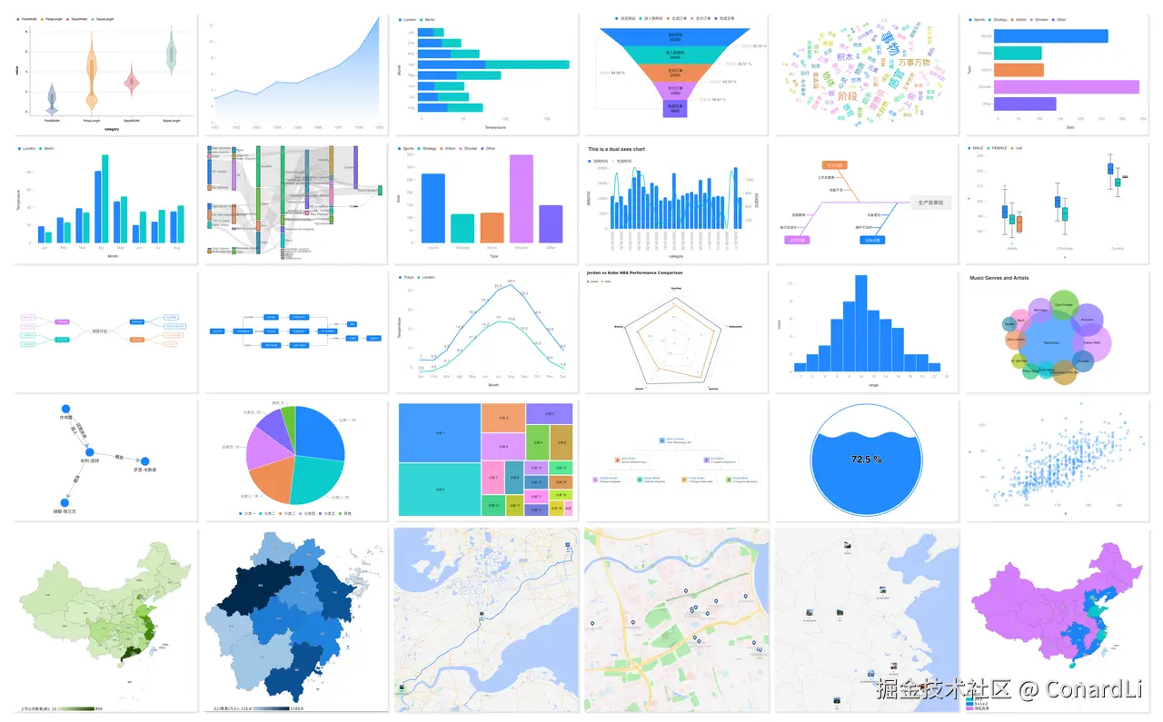 如果觉得 Excel 自带的图表不够丰富,我们可以借助 @antv/mcp-server-chart 帮我们生成更多维度的图表 ( github.com/antvis/mcp-… ) 它支持生成 20 种不同风格的图表:
