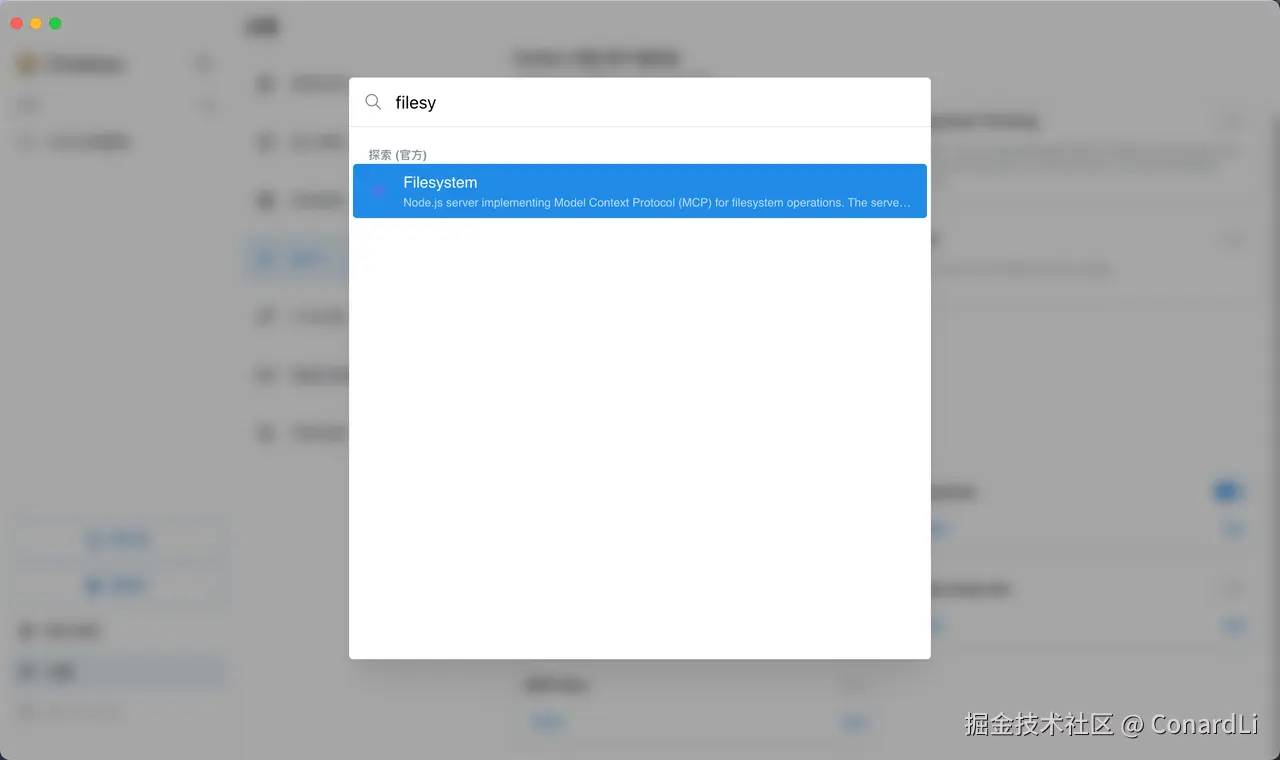直接在官方 MCP 列表中就可以检索到 Filesystem: