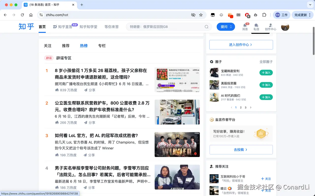 AI 将自动打开浏览器,浏览指定内容,并抓取网页信息: